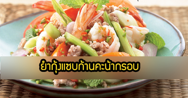 ยำกุ้งแซบก้านคะน้ากรอบ